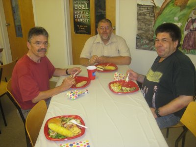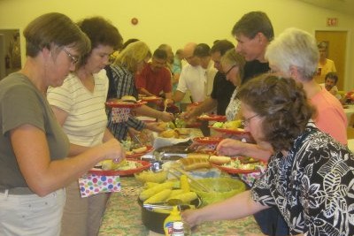 This year BFA held its largest in recent history Corn roast as about 65 showed up to celebrate the end of summer and the start of a new season of ministry. Normally this event was held at Lil's place, but due to heavy rainstorm, our back-up plan was to go to the Chapel's fellowship Hall. As well as celebrating the end of summer, one of the highlights this year was a church celebration of Chester and Marion Donaldson's 65th anniversary of their wedding. A wonderfully decorated cake was presented, and Chester and Marion cut the cake once more and offered each and everyone a piece of their joy! We rejoiced as a church in the faithful and consistent demonstration of God's grace in this married couple's life. We wished them many more years of service together, and a card of well wishes was presented to them. Following dessert, many stayed to enjoy a time of singing and praising the God of all grace as Stan, Phil, and Marion blessed us with their ministry of music. We are grateful to God for all his goodness to each and everyone over the summer of 2012!