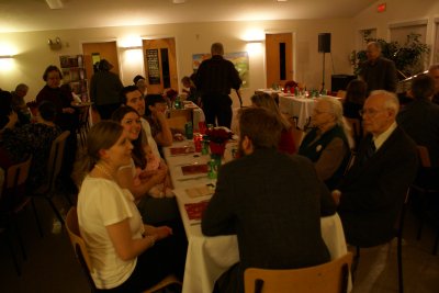 Approximately 70 were present to enjoy a wonderful time of fellowship, food and praise as we gathered at the annual Christmas Banquet. The time began with a wonderful carol sing with Phil at the piano and Shannon on flute. This was followed by a sumptuous meal catered by Toffanello's. After supper, Wade gave an excellent word as he shared the "True Meaning of Christmas". Thanks to all those that worked behind the scenes to make this a truly memorable evening!