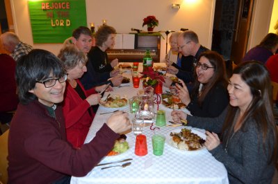BFA had such a nice Christmas banquet this December. Around fifty arrived to a time of appetizers, and were soon into the hall where the McIntyre Catering did an excellent job providing all with an excellent turkey dinner. The tables were decorated with festive red, and soon thanks had been offered and we were eating and fellowship. The evening also consisted of special music by Hannah and Becky, carol singing led by Vickie, and a warming Christmas devotional by Marc. The evening seemed to end far too soon, and we know that this could not have been the success it was without the Social committee's hard work behind the scenes. Thanks as well to Joe for his fine job of MC'ing and coordinating the fine details. We are already looking forward to next year!
