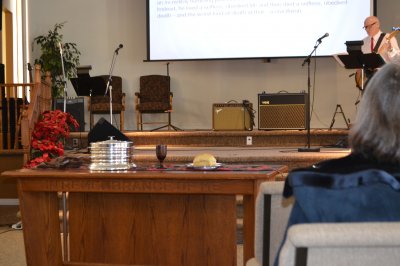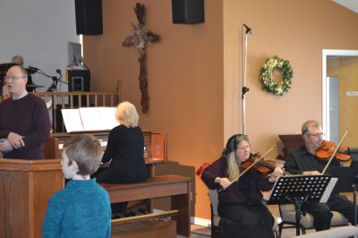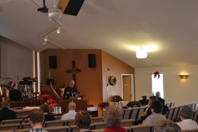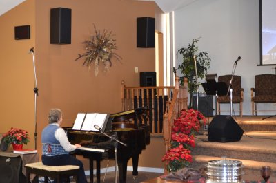 This year Christmas Day fell on a Sunday, and it was agreed by BFA leadership that the services would go on as usual. We had a combined communion service planned, along with our Praise Team of guitar, drums, tin whistle, organ, piano, violin and vocals...all led by Vickie H. The music and scriptures complimented nicely Ted B's sermon, which centred on the wonder of the incarnation. We were encouraged that many of our congregation considered this meeting a priority. A special gift was the appearance of Marion D, along with Ginny and Jan! This special visit reminded us that it was a very special person that came to the first Christmas, and we all praised God for the birth of Jesus. It is a good thing to enter into the house of the Lord in praise!