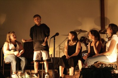 This past Friday, June 19th Bible Fellowship Assembly and The Open End Youth Centre hosted an evening of music and drama. Wally Bidwell opened in prayer. A nice group of around 80 were present as the Praise band "Shoeless" and the drama group "The Edge" of Glad Tidings Pentecostal Church of Cochrane performed an evening of music and skits.