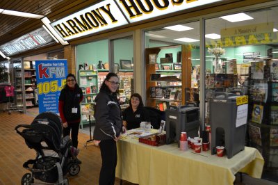 This Feb. 20Th, all the PR crew from KFM 105.5 (our newest Christian Radio Station) showed up to participate in the first ever live-on-location for Harmony House. While present, our Pal, Cal shared the newest information about Harmony House products to all the listening audience of KFM. His friendly voice over the next several hours present was a great incentive to encourage friends and listeners to come on over to enjoy this sale. Harmony House saw many friends as free coffee, tea, and Timbits were also made available. Four draws were held (no purchases required) during this event...all for valuable items found in the store. Many mall employees came by to say “Hello” and to enjoy some free refreshments, while expressing gratitude to Harmony House for their special day. Thanks again to KFM for their excellent promotion. May God bless this radio station!