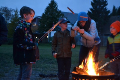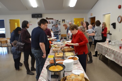 On Oct. 14th BFA held its first every evening church bonfire. Believers gathered together in the cool but dry night air, to sit around a cheery fire to roast marsh mellows, hot dogs, and drink an amazing hot apple cider; all the while enjoying fellowship. It was a cool way to get to know one another and invite the neighbours to see what BFA is all about. The very next Sunday, we enjoyed one of our first snowfalls, but also participated in a warm time at noon around chicken chili, hot soups and various food treats as approximately 45 stayed to enjoyed each other's company following a rousing time of worship and the Word. Bring and share luncheons are held every third Sunday of the month.