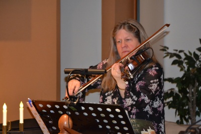 This year BFA had as its Christmas Eve theme "The 5 Candles of Advent." Each reading was introduced with a candle lit to represent Jesus as hope, preparation, joy, love and finally; holiness and purity. Various members of BFA brought forth scripture relating to this theme as well as lit a candle for this moment. We were blessed with various ones offering their musical gift on the Hammered Dulcimer, piano, organ, guitars, bass guitar, violins, flutes, vocals, drums, and sound system and power point. The congregation enjoy singing out the traditional Christmas hymns as well as modern Christmas praise. We followed the time with closing prayer, and the offering of children's treat bags, which this year also included a copy of a bilingual or a contemporary English New Testament. Around 70 were present for this wonderful time of reflection on the wonder of the Incarnation.
