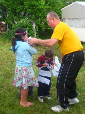 In the evening at the Open End Youth Centre, BFA and Open End members and the Leesville Team worked cooperatively to provide a Vacation Bible School from 6-8 pm. This outreach combined games, treats, crafts and a good helping of God’s Word as the participants learned about the Ten Commandments. There were approximately 18 students in attendance by Wednesday learning what it means to “Honour your father and mother”.