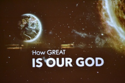 We were grateful for those from BFA who cared for the over ten children who came to this event. Promptly at 6:30 pm, Trevor M opened the meeting with prayer and shared “Why do we worship?” A short video was presented with the theme of “Our Great God”. Then we were blessed with the BFA Praise Team, (TM, HM, RR, AR, BR BJ) who led the congregation (approx 100) with “Our God, Open up the Heavens, Lay me Dow, God is able, Christ is enough and Forever Reign.”