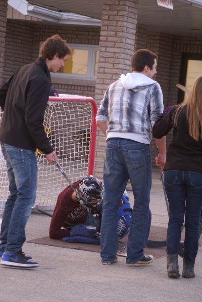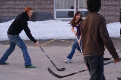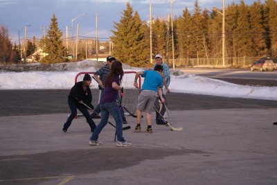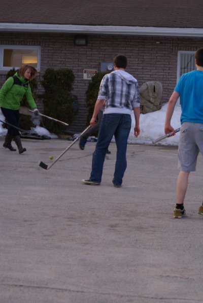 About 25 youth and leaders attended the April Fools Ball Hockey Event at B.F.A. This was a joint event between B.F.A. and Grace Bible Chapel. The weather was perfect for the event with a parking lot of free from snow and the temperatures above zero.